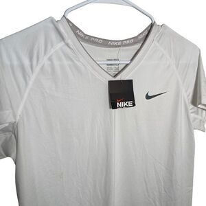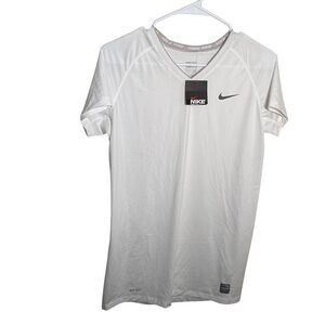 Nike Pro T-Shirt Women's Large V-Neck White Short Sleeve Athletic Sheer Top