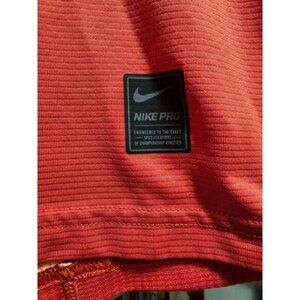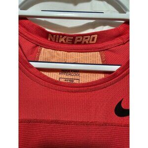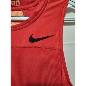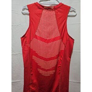 Nike Pro Tank Top in size Medium for women, in a vibrant red color. Made with medium fabric wash for activewear purposes. The tank top belongs to the Nike brand and features a regular size type. It is perfect for workouts and other athletic activities.