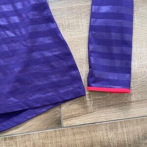 Nike Pro Top Womens Large Purple Hyperwarm New 1/2 Zip Striped Training Sweater