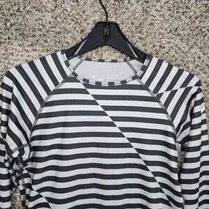 Nike Pro Top Womens Medium Dri Fit Gray Striped Fitted Tee Long Sleeve Ladies