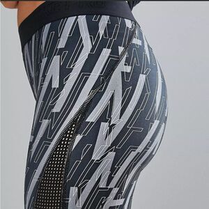 Nike Pro Training Hypercool Printed Leggings in black and gray Nike all over. Mesh sides for ventilation to keep you cool. Gray textured waistband. EuC