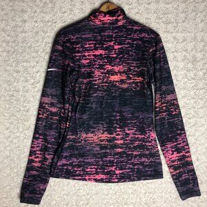 Nike Pro Warm Purple Pink Ink Strip Long Sleeve 1/2 Zip Running Shirt Size M