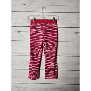 Nike Pro Womens Activewear Capri Pants Pink Mid Rise Stretch Stripe Pull On S