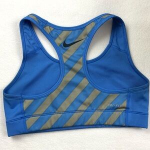 Nike Pro Women's Blue/Gray Stripe Swoosh Compression Exercise Sports Bra Size S