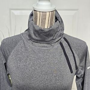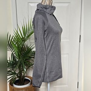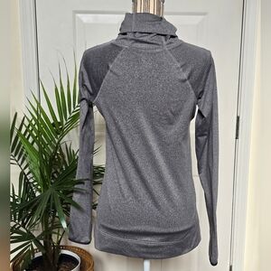 EUC, looks brand new without tags, flattering cowl neckline, compression fit, thumb holes, soft brushed fleece lining, heather color