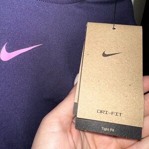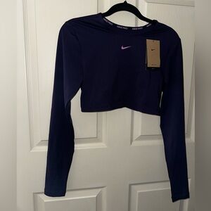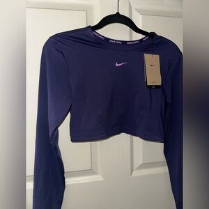 Nike Pro Women's Dark Purple Long Sleeve Crop Top Dri-fit M Gym Activewear NWT