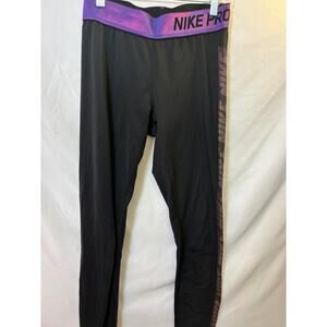 Nike Pro Women’s Dri-FIT Leggings Black Purple Iridescent Waistband Size M - $45