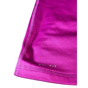 This Nike Pro pullover offers a blend of function and comfort with its polyester-elastane fabric, making it suitable for active wear. The fitted design and half-zip closure cater to both performance and style, while the vibrant pink color adds a touch of energy.