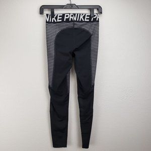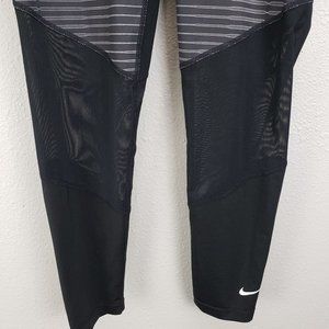 Nike Pro Womens Size S Colorblock Athletic Tights Black And Gray Stripe And Mesh