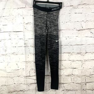 Nike Pro Women’s Size XS Black Gray Ombre Multicolor Hyperwarm Stirrups Leggings Compression Dri Fit Pants
