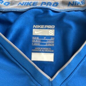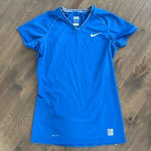 Nike Pro Women’s v-neck Top size Small in Blue. Nike Pro Short Sleeve V-Neck t-shirt, is made from dri-fit fabric which keeps you warm and dry during your workout. The slim fit t-shirt is ideal for layering and allows for unrestricted movement, while the side seams help to reduce irritation caused by chafing. Excellent condition!