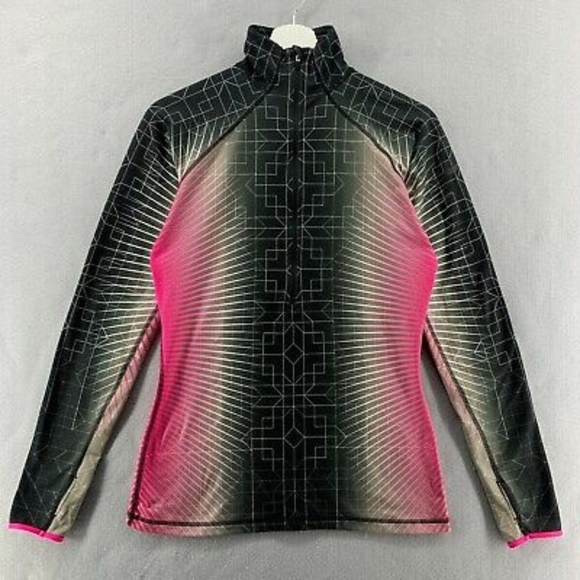 Nike Pro Activewear Jacket Womens Large 1/2 Zip Pullover Pink Black Geometric.