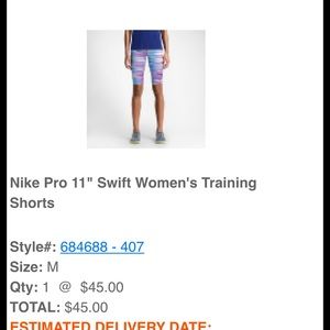 Ladies! When looking to buy Nike Pros, go check the Nike website! You can find them cheaper there.. All the Nike Pros I see on here are ridiculously over priced. I saw a lady selling the rainbow ones, 3' for the price I got mine the 11' BRAND NEW, on the website! Nike has sales all the time. So you should check on there first! :)