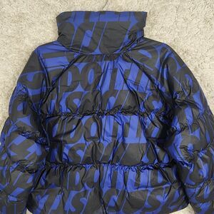 Nike Puffer Jacket Womens Medium Blue Sportswear Just Do It Logo Zip Winter Coat