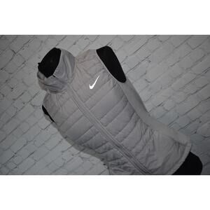 Nike Puffer Vest Jacket Running Womens Size Medium Performance Full Zip Gray