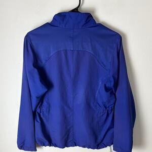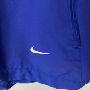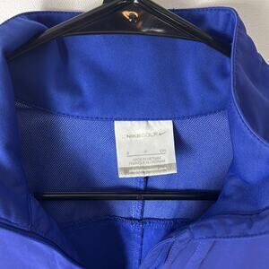 Gently Used Nike Golf Quarter Zip Pullover. This is a women's small. Maybe a bit oversized in my opinion. Originally from 2012 but still in great shape! Blue / purple color throughout. White Nike swoosh towards the waist. Front zipper pockets. Windbreaker like material and look to it. 100% polyester.