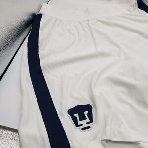 Perfect for true Pumas UNAM fans! Original Nike shorts in white with navy blue details. Featuring the Pumas logo on the leg and the iconic Nike Swoosh. Ideal for training, playing soccer, or supporting your team in style. In excellent condition.