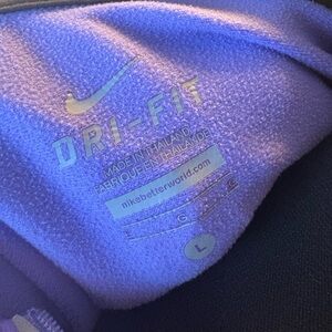 Comfortable Nike purple quarter zip hoodie with Dri-FIT technology. Ideal for workouts. Features thumbholes and small zip pocket on back.