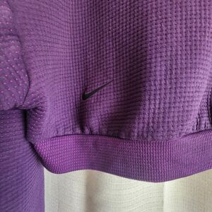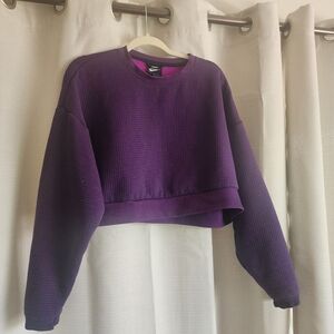Embrace a blend of style and comfort with the Nike Purple Oversized Cropped Hoodie. This top features a rich purple hue and long sleeves, perfect for a contemporary athleisure look. The oversized fit and cropped design offer a modern twist, making it an ideal choice for casual outings or relaxed days. Crafted from a soft cotton blend, it ensures a cozy feel throughout the day.