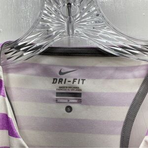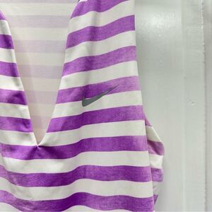 Nike Purple White Dri-Fit Racerback V-Neck Athletic Tank Top women's small purple white stripes grey logo