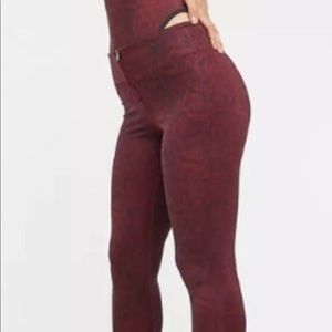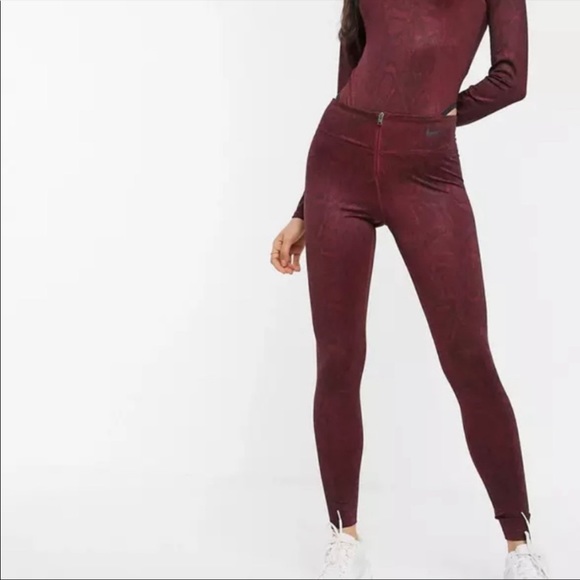 cute maroon nike python set (body suit & leggings) does stretch. leggings has zipper in the front top and bottom are both a size small i usually wear a medium but will fit perfectly if you wear a small set has been worn less than 5 times