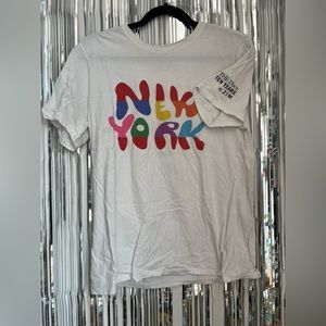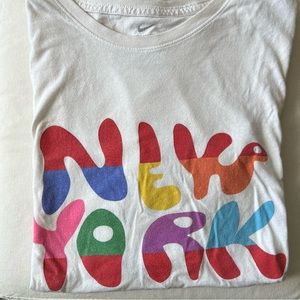 Get your hands on this vintage gem: a 21 M ((From the iconic 21 Mercer street location ) Nike Lab T-shirt, a rare find indeed! When folded up, it spells "Nike," and when folded down, it spells "New York" in vibrant colors for that extra pop. Made of 100% cotton, it's a size medium, unisex, previously loved, and now unbelievably soft. Sold as is, because some things are just too cool to pass up.