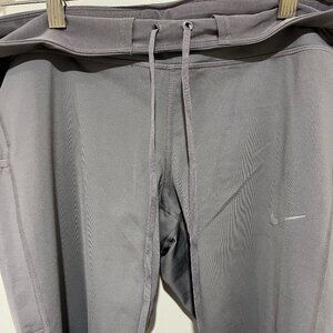 Nike Dri-Fit Racer Capri Leggings with mesh on calves, ties around waistband, and zipper on the backside