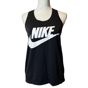 Nike Racer back cotton tank black with white logo 830391. Good used condition. See photos for details and measurements. View other items in my closet and combine for one shipping charge!
