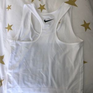 Never worn!! Work out in style with dri-fit material! Cute Nike crop top! ❣️. Nike “Just Do It” on front and logo on back