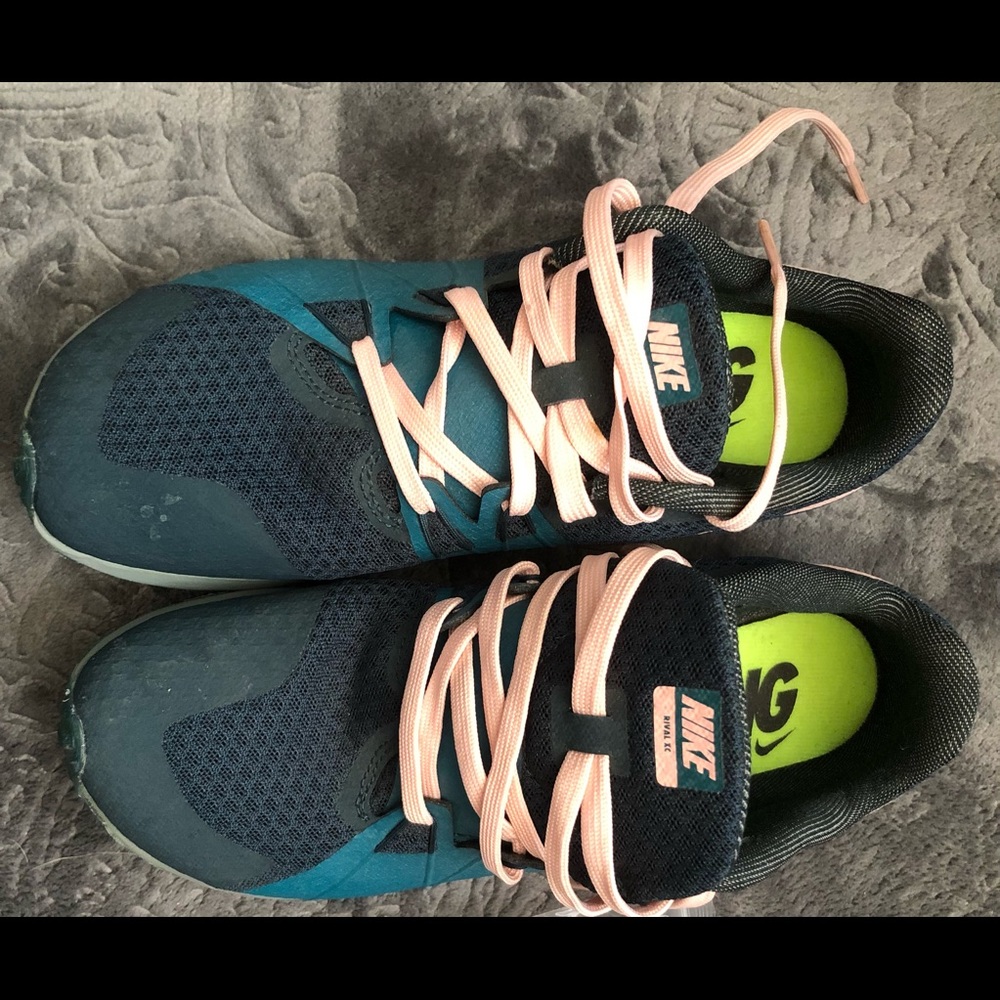 Teal and pink Nike Racing shoes size 6. With spike tips.