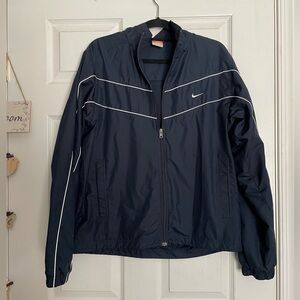 Navy jacket with white accents. Stylish and versatile. Lightweight rain jacket good condition no rips or stains worn a few times