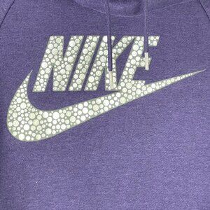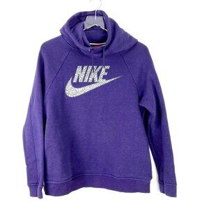 Nike Rally Funnel Neck Metallic Swish Pullover Hoodie Sweatshirt. Purple. Size M