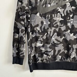 Nike Rally Womens Camo Sweatshirt S Gray Long Sleeve Relax Cozy Lounge Top Gym