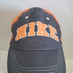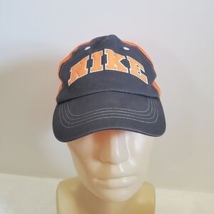 Nike Gray Orange Toddler Baseball Hat Cap. 100% cotton, rare find, made 9/2009, adjustable velcro closure, ventilation holes around crown, orange & white Nike logo on front panel, Nike swoosh on back strap. No rips, snags or stains. Like new condition!