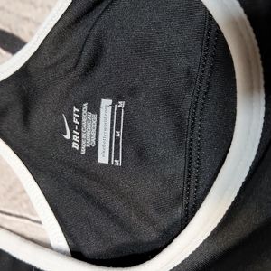 Black and white Nike work out top. Back mesh panel, built in bra lining. Dri-fit, EUC, refle tive straps on back.