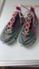 Dynamic gray sneakers featuring bold pink swoosh and orange highlights. Perfect for active wear.