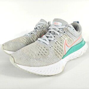 This listing is for a pair of Nike React Infinity Run Flyknit 2 women’s running shoes, size 8 US, in the Blue Tint / Lava Glow colorway (style code: CT2423-400). These are high-cushion stability running shoes designed for comfort and injury prevention, featuring Nike’s responsive React foam midsole and breathable Flyknit upper for a smooth, supportive ride.