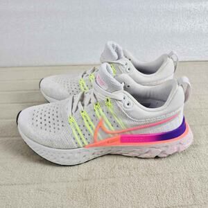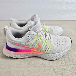 Lightweight and supportive Nike React Infinity Run Flyknit 2 running shoes. Built for comfort and injury prevention with responsive Nike React foam cushioning and breathable Flyknit upper. Stylish design with vibrant neon and gradient accents. Brand: Nike Model: React Infinity Run Flyknit 2 (DJ5928-001) Size: Women’s US 7.5 / UK 5 / EUR 38.5 / CM 24.5 Color: White / Neon Yellow / Pink / Purple accents Features: React foam cushioning, Flyknit upper, lace-up closure, padded collar, durable rubber outsole Condition: Pre-owned, gently worn, very good condition (see photos). Perfect for daily runs, gym training, or casual wear with comfort and style.