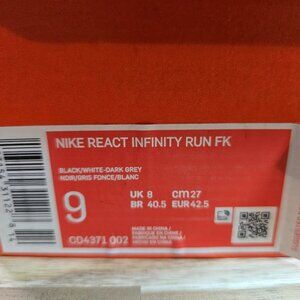 Nike React Infinity run FK CD4371 002 Size 9 Excellent condition!!!