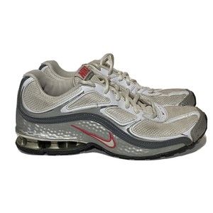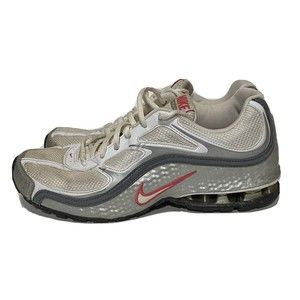 Nike Reax Run 5 Running Athletic Shoes. Womens Size 9. White, Gray & Pink. Style # 407987-116. pre-owned condition. Please see all pictures for complete item description. (224WS-6)