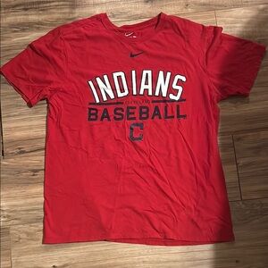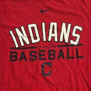 Vibrant red tee with bold 'Indians Baseball' print. Nike logo on chest.