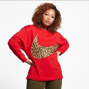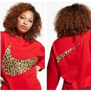 Nike Red Leopard Swoosh Sweatshirt Size M