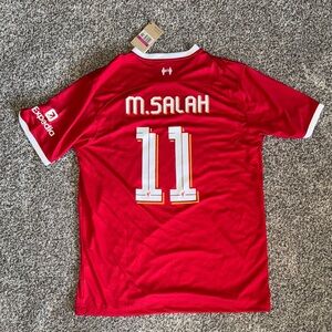 This red Nike jersey is perfect for Liverpool FC fans, featuring the iconic swoosh logo and club crest. The short sleeves and clean design make it ideal for showing support on game day.