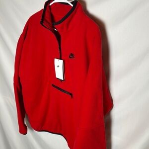 Stylish red pullover jacket with a front pocket. Features the iconic Nike logo.