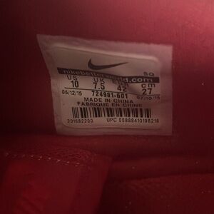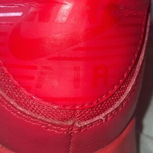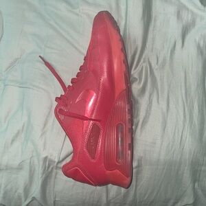 Bold red Nike sneakers. Sleek design. Comfortable fit.