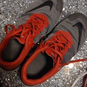 Stylish Nike sneakers with a red and gray design. Comfortable and trendy.