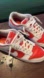 Vibrant red and white Nike shoes. Ideal for everyday style.