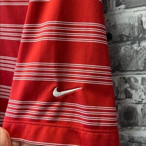 Classic red Nike polo with white stripes. Ideal for golf outings. Used but in good condition. Size large