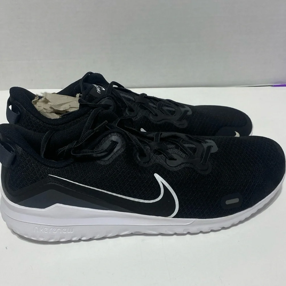Nike running sneakers in black with white detailing. Lightweight and comfortable.