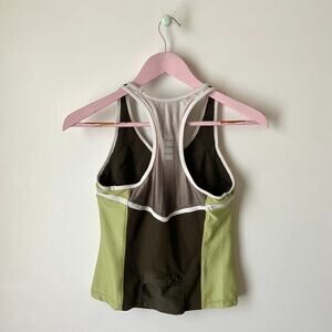 Mutishqde green vintage retro racerback workout/exercise tank top by Nike. With a built in bra layer. Great preowned condition. Size small. Great preowned condition. Measurements in photos.